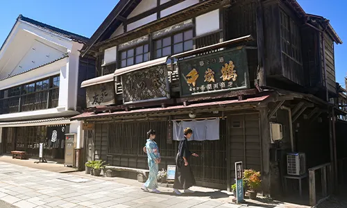 当時の蔵を利用したモダンなカフェで一休みしたり、お気に入りの歴史的な建物を背景に最高の一枚を撮影したり。